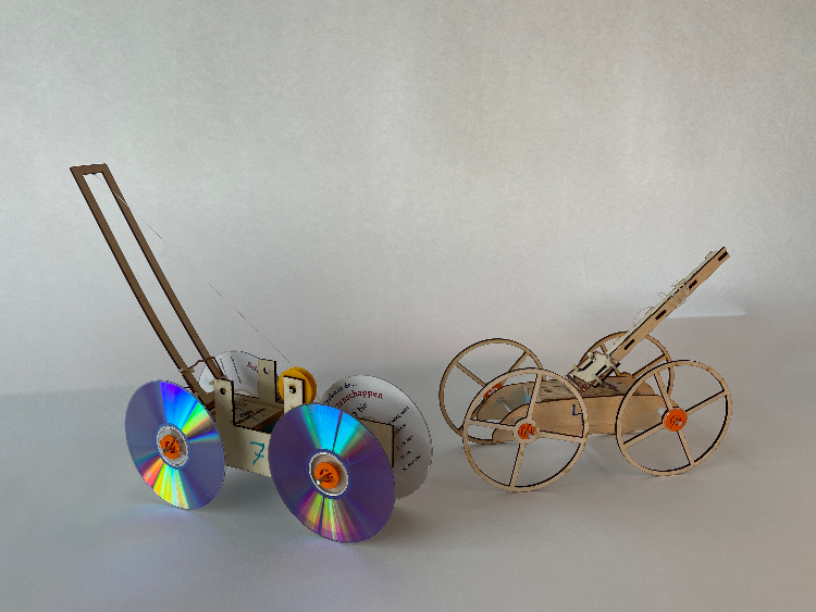 Aspecten zoals hefboomwerking, massa (traagheid) en wrijving waren cruciaal om de beperkte hoeveelheid joules zo efficiënt mogelijk te benutten, met minimale kracht en maximale afstand. Deze groepsopdracht, ontworpen in 3D CAD en vervaardigd met de lasersnijder van de school, resulteerde in fantastische voertuigen met soms zeer fraaie en vooral lichte koetswerken, die afstanden tot wel 20 meter bereikten. De kwaliteit van de ontwerpen deed volgens de studenten niet onder voor menig eerstejaars werktuigbouwkundig ontwerp.